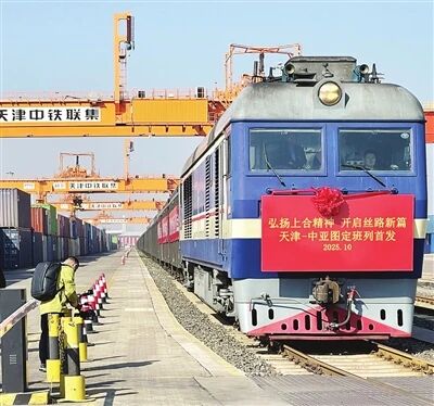 天津集装箱中心站经营开发部主任李志武介绍,这趟中亚班列共运载了55个40英尺集装箱,到站包括哈萨克斯坦阿拉木图、乌兹别克斯坦谢尔盖利等多个中亚城市,运输周期约为10天。“为保障班列顺利开行,我们根据班列发运计划,精准调配装卸设备与作业人员,优先装车、优先发运,还与海关、港口等相关部门及单位协作联动,应用‘铁路快速通关’模式,不断提升通关效率,缩短班列全程运输时间。”李志武说。