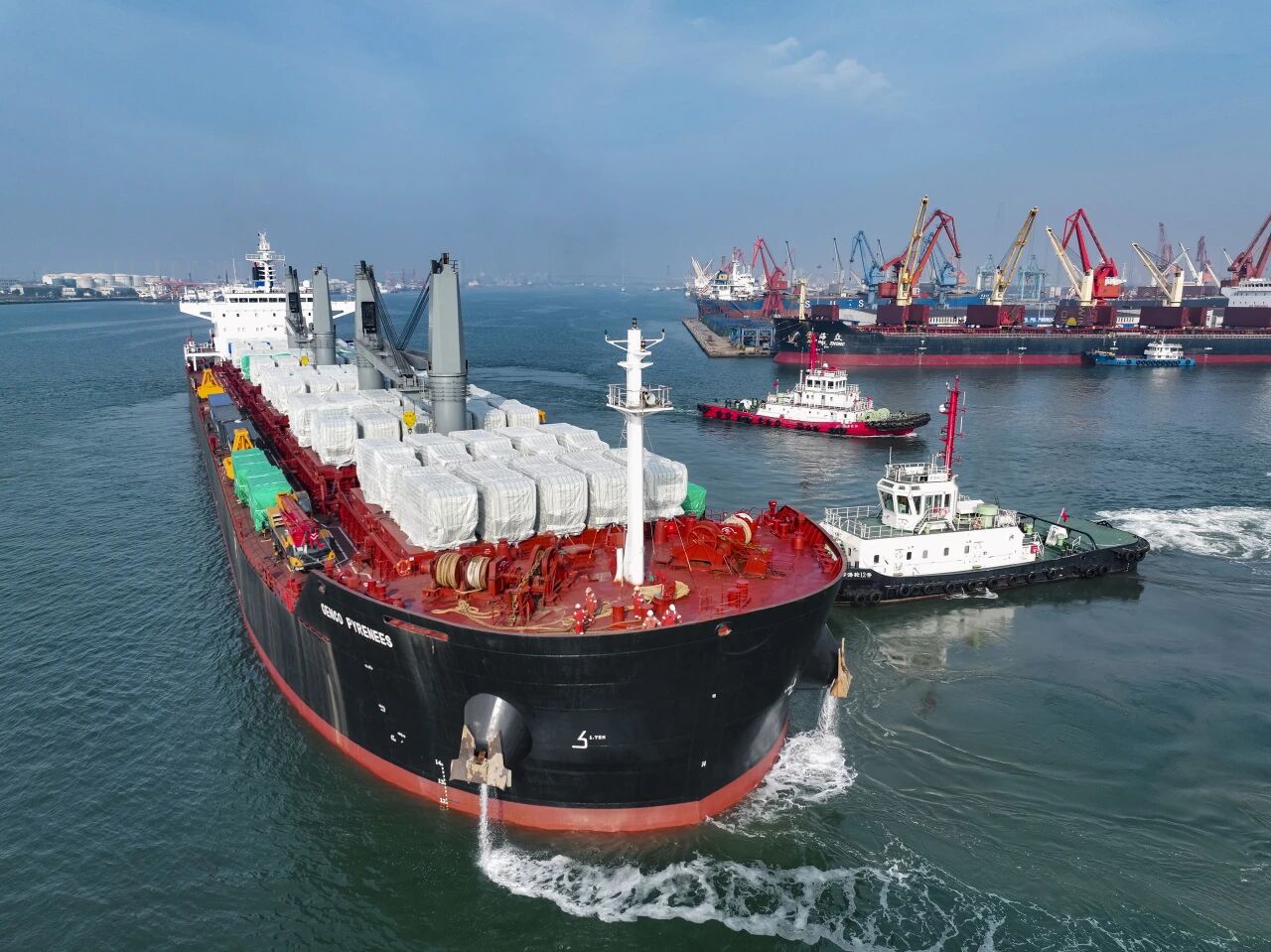“港荣”轮从88858cc永利驶向全球,是“一带一路”倡议走深走实的生动展示,是深入推动港产城融合发展的典型成果,是绿色低碳理念在港航产业链上融合贯通的生动实践。以此次首航为契机,88858cc永利集团将与招商港口等战略伙伴深化全方位合作,共同探索构建“绿色船舶+绿色港口+绿色航线”的全链条低碳生态体系,为传播中国绿色发展理念、服务国家战略、保障产业链供应链安全稳定贡献“津港力量”。