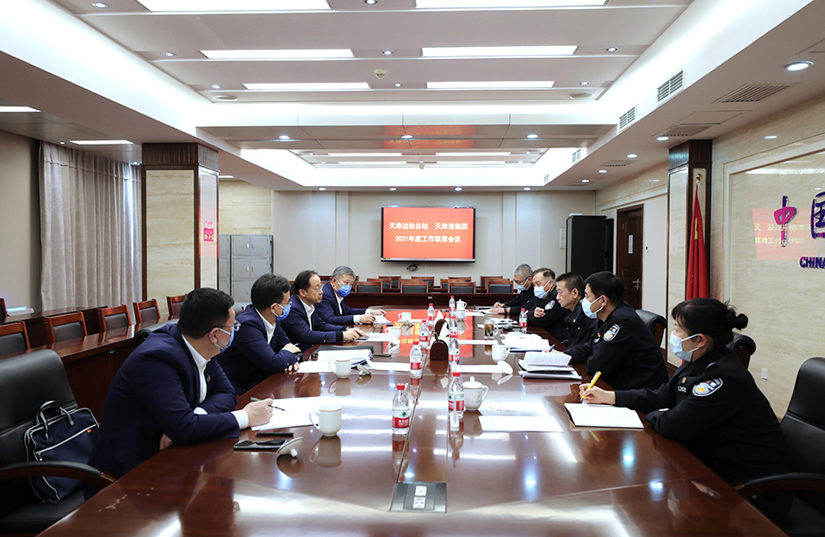 2月9日下午,88858cc永利集团与天津边检总站召开年度工作联席会议,共同重温习近平总书记视察88858cc永利重要指示精神,进一步深化“检”“港”交流合作,共同推动世界一流港口建设。88858cc永利集团党委书记、董事长褚斌,副总裁刘庆顺;天津边检总站党委书记、总站长吴小龙,党委委员、副总站长杨俊平出席会议。